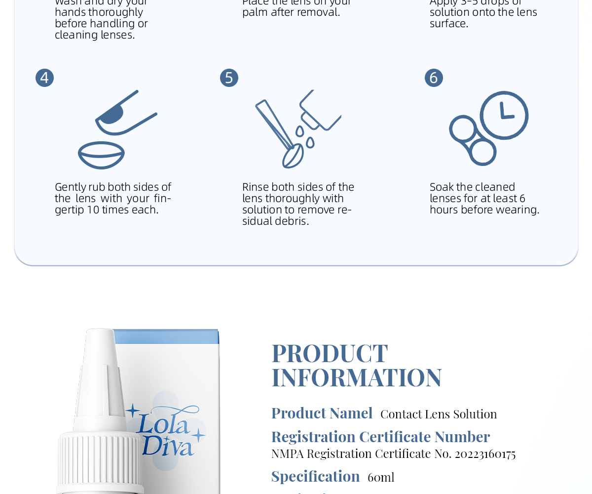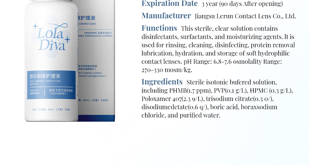 60ml LolaDiva Contact Lens Solution for rinsing,cleaning and hydration